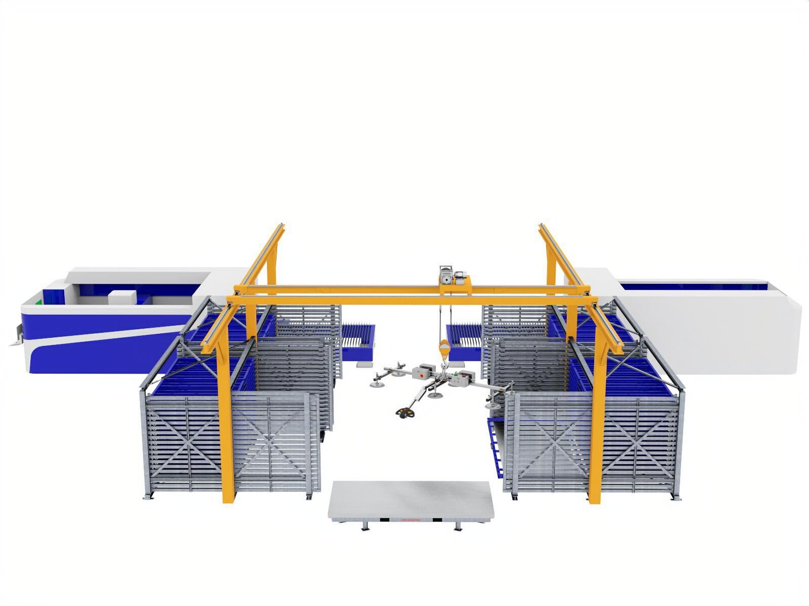 Indépendamment de cela, la Système de prélèvement de tôles peut également être utilisé pour alimenter les machines de découpe à table alternante situées à proximité.