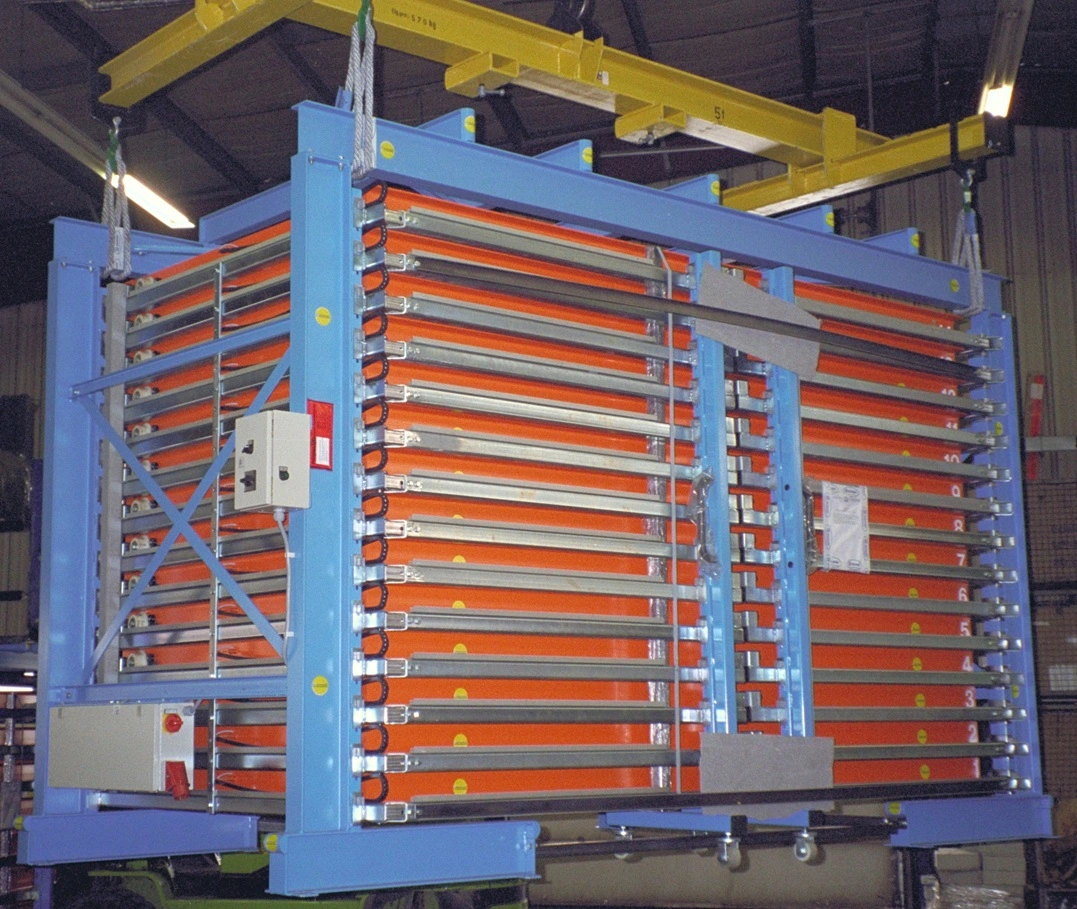 - Stockage de tôles et de barres combinable avec des séparations enfichables.
